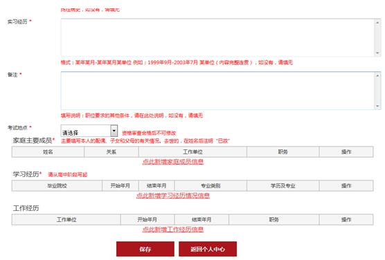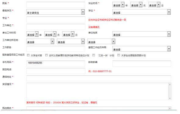 完善個(gè)人信息是一項(xiàng)“龐雜的工程”,需要考生準(zhǔn)備很充分很充足的資料,有*標(biāo)注的是必須填寫的內(nèi)容,考生要一定要如實(shí)填寫,將各類證件備齊,并確定好具體日期。