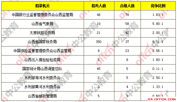 為幫助廣大考生更清晰的了解今日?qǐng)?bào)名情況,山西中公教育整理了審核通過(guò)人數(shù)前十位的部門(mén)以及競(jìng)爭(zhēng)比例最激烈的十大部門(mén),供廣大考生參考: