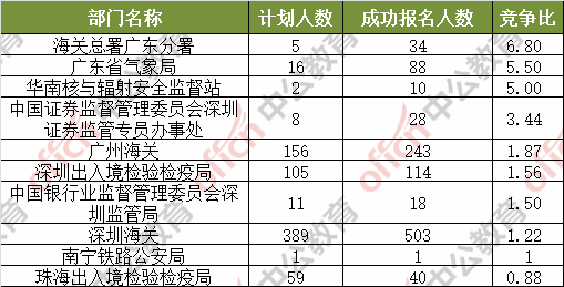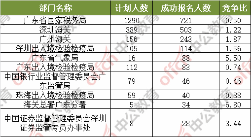 截至10月30日18時(shí),據(jù)中公網(wǎng)校統(tǒng)計(jì),國(guó)考職位中工作地點(diǎn)在廣東的職位通過審核總?cè)藬?shù)為1961人,共有106個(gè)職位無人通過審核,平均競(jìng)爭(zhēng)比例為0.57:1。