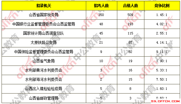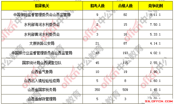 截至10月31日18時(shí),據(jù)中公網(wǎng)校統(tǒng)計(jì),國考職位中工作地點(diǎn)在山西的職位通過審核總?cè)藬?shù)為1080人,共有188個(gè)職位無人通過審核,平均競(jìng)爭(zhēng)比例為2.03:1。