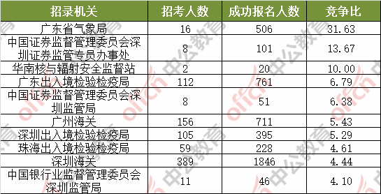 為幫助廣大考生更清晰的了解今日報名情況,中公網(wǎng)校整理了審核通過人數(shù)前十位的部門以及競爭比例最激烈的十大部門,供廣大考生參考: