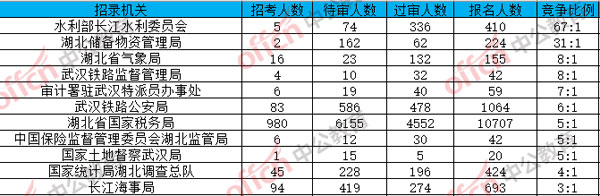 湖北報(bào)名人數(shù)最多的十大部門