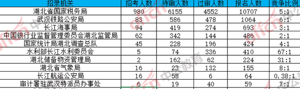 湖北報(bào)名競(jìng)爭(zhēng)最激烈的十大部門