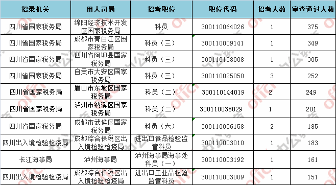 第四日報(bào)名通過審核人數(shù)前十的職位主要集四川省國家稅務(wù)局等部門,具體信息如下: