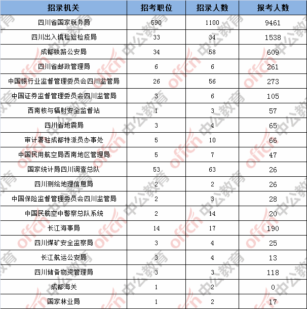 為幫助廣大考生更清晰的了解今日報(bào)名情況,四川中公教育整理了已審核通過人數(shù)的部門,此數(shù)據(jù)供廣大考生參考: