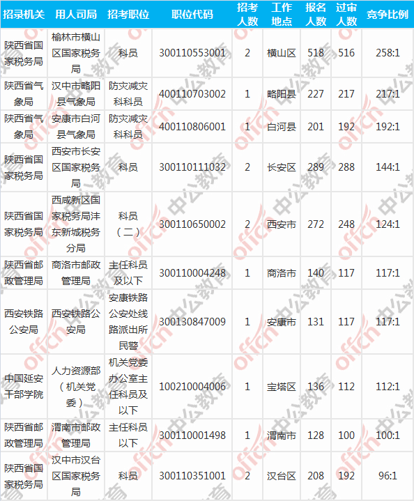 [3日16時]2018陜西國考報名人數(shù)統(tǒng)計:陜西9806人過審 最熱職位258:1