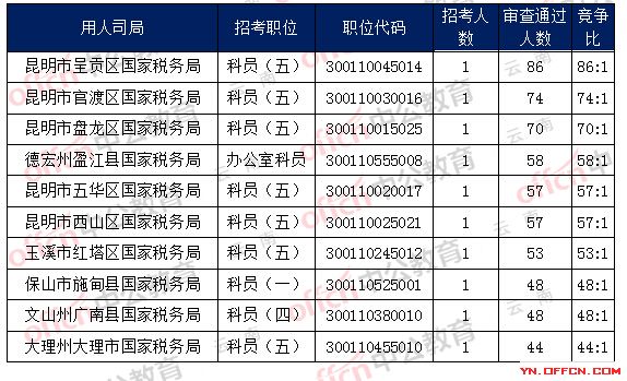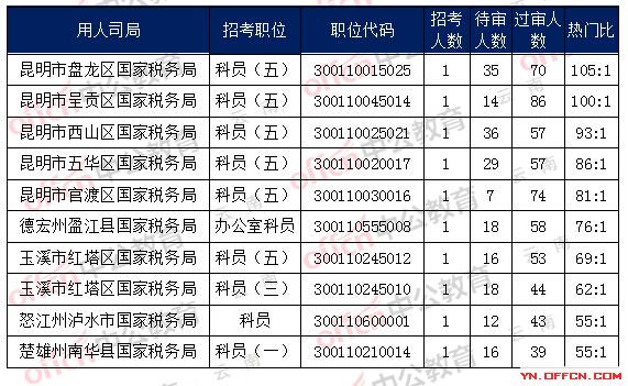 一、云南省國稅局職位報名人數(shù)分析