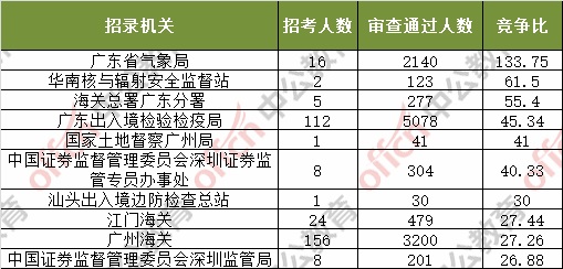 截止到4日16時(shí),通過(guò)審核人數(shù)前三位的部門(mén)依次是:廣東省國(guó)家稅務(wù)局、深圳海關(guān)、廣東出入境檢驗(yàn)檢疫局,三部門(mén)通過(guò)審核總?cè)藬?shù)達(dá)27454人,占通過(guò)審核總?cè)藬?shù)的61.2%。
