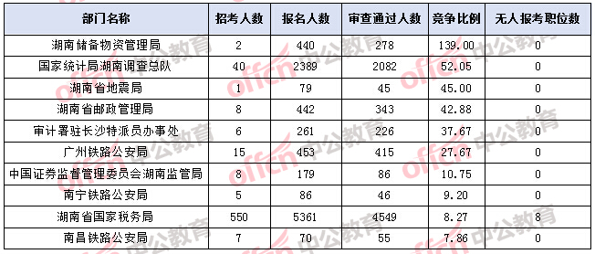 湖南國考報名人數(shù)競爭最激烈的十大部門