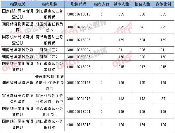 湖南國考報名競爭最激烈的前十的職位