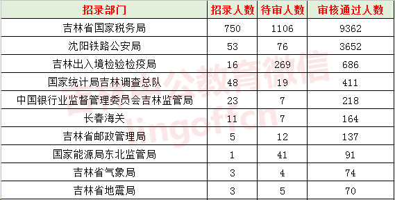 截止到11月4日16時(shí),通過審核人數(shù)前三位的部門依次是:吉林省國家稅務(wù)局、沈陽鐵路公安局、吉林出入境檢驗(yàn)檢疫局,三部門通過審核總?cè)藬?shù)達(dá)13700人,占通過審核總?cè)藬?shù)的91.18%。