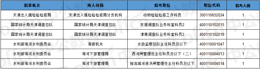 截止到5日09時(shí),工作地點(diǎn)在天津的職位共有6個(gè)無(wú)人報(bào)考,占全部職位的2.8%。下圖是無(wú)人報(bào)考職位一覽表,中公網(wǎng)校建議廣大考生多關(guān)注一些較冷職位,避免激烈競(jìng)爭(zhēng),結(jié)合自身?xiàng)l件,找到屬于自己的職位。