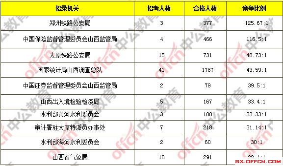 為幫助廣大考生更清晰的了解今日報名情況,中公網(wǎng)校整理了審核通過人數(shù)前十位的部門以及競爭比例最激烈的十大部門,供廣大考生參考: