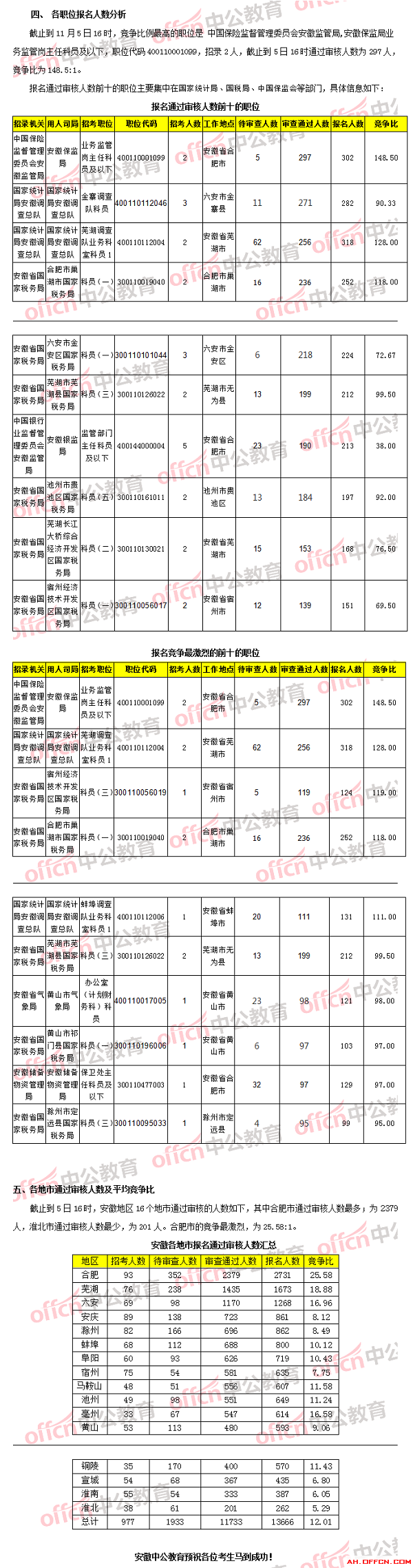 【11月5日16時】2018國考報名人數(shù)統(tǒng)計:安徽通過審核總人數(shù)破萬,還有8個職位無人報考