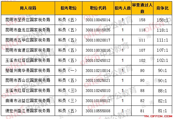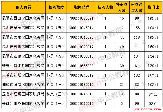 一、云南省國稅局職位報(bào)名人數(shù)分析