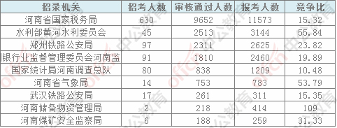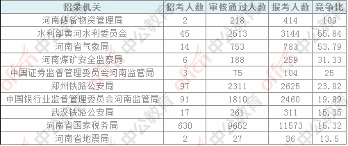 報名通過審核人數(shù)前十的職位主要集中在鄭州鐵路公安局、河南省氣象局、河南省國家稅務(wù)局,具體信息如下: