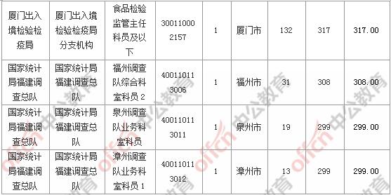 報名通過審核人數(shù)前十的職位主要集中在福建省國家稅務(wù)局、廈門出入境檢驗(yàn)檢疫局、廈門海關(guān),具體信息如下: