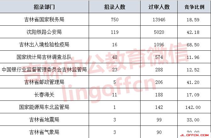 截止到11月6日16時,通過審核人數(shù)前三位的部門依次是:吉林省國家稅務(wù)局、沈陽鐵路公安局、吉林出入境檢驗(yàn)檢疫局,三部門通過審核總?cè)藬?shù)達(dá)20062人,占通過審核總?cè)藬?shù)的91.78%。