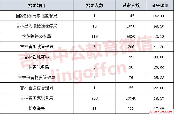 為幫助廣大考生更清晰的了解今日報(bào)名情況,中公網(wǎng)校整理了審核通過人數(shù)前十位的部門以及競爭比例最激烈的十大部門,供廣大考生參考: