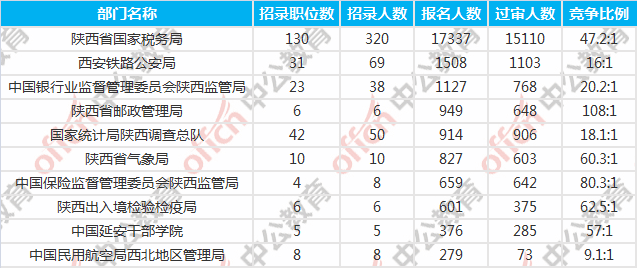 陜西國考報(bào)名人數(shù)最多的十大部門