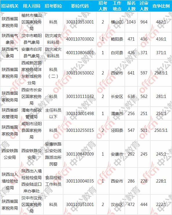 截至到7日9時,工作地點(diǎn)在陜西的,過審人數(shù)為0的職位共有5個。下面是過審人數(shù)為0 的報考職位一覽表,中公網(wǎng)校專家建議廣大考生再仔細(xì)看看職位表,千萬不要錯過了報名的時期。