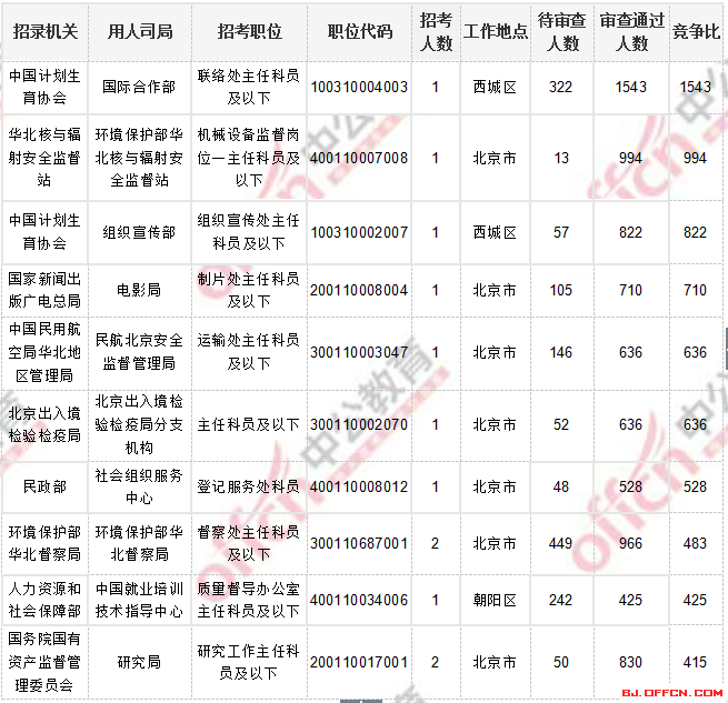 2018國(guó)考北京地區(qū)競(jìng)爭(zhēng)比例最多十大職位