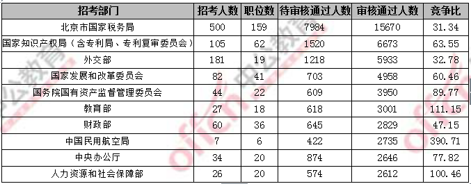2018國(guó)考北京地區(qū)過(guò)審人數(shù)最多十大部門(mén)