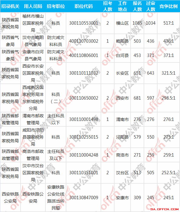 截至到7日16時,工作地點在陜西的,過審人數(shù)為0的職位共有5個。下面是過審人數(shù)為0 的報考職位一覽表,中公網(wǎng)校專家建議廣大考生再仔細看看職位表,千萬不要錯過了報名的時期。
