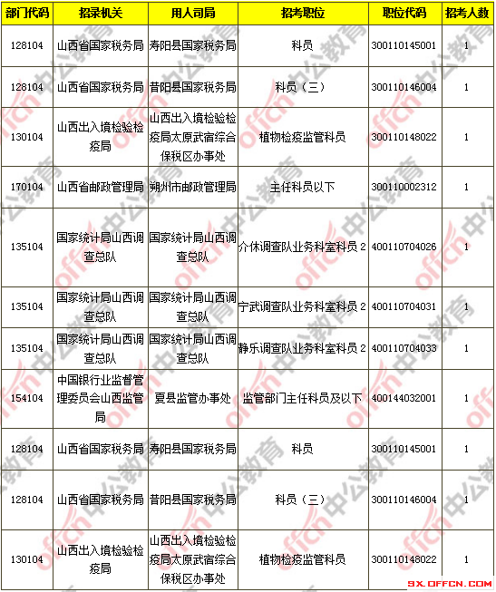 截止到11月7日16時(shí),工作地點(diǎn)在山西的職位共有8個(gè)無人報(bào)考,占全部職位的0.04%。下面是無人報(bào)考職位一覽表,中公網(wǎng)校專家建議廣大考生多關(guān)注一些較冷職位,避免激烈競(jìng)爭(zhēng),結(jié)合自身?xiàng)l件,找到屬于自己的職位。