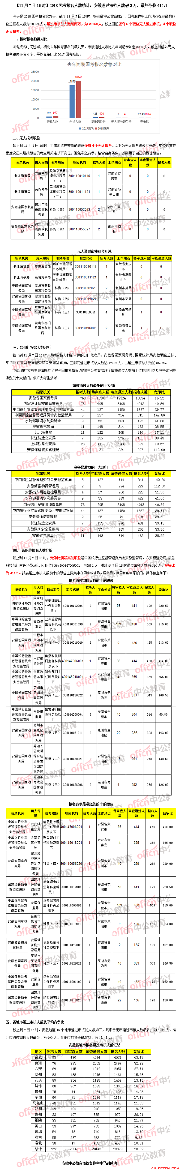 【11月7日16時】2018國考報名人數統(tǒng)計:安徽2萬人過審,尚有6個職位無人通過審核