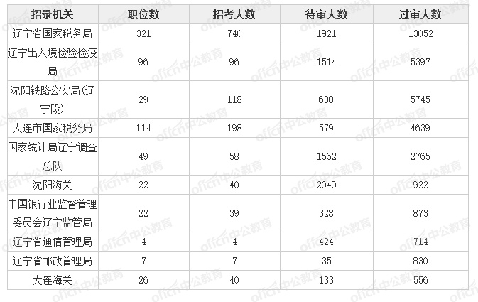 為幫助廣大考生更清晰的了解今日報名情況,中公網(wǎng)校整理了審核人數(shù)前十位的部門以及競爭比例最激烈的十大部門,供廣大考生參考: