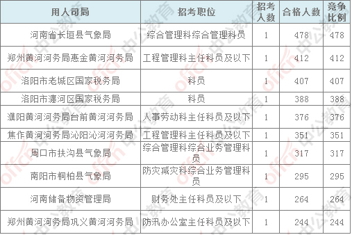 報名通過審核人數(shù)前十的職位主要集中在鄭州鐵路公安局、河南省氣象局、河南省國家稅務(wù)局,具體信息如下: