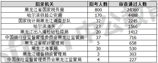 截止到11月8日16時(shí),通過(guò)審核人數(shù)前三位的部門依次是:黑龍江省國(guó)家稅務(wù)局、哈爾濱鐵路公安局、國(guó)家統(tǒng)計(jì)局黑龍江調(diào)查總隊(duì),三部門通過(guò)審核總?cè)藬?shù)達(dá)31093人,占通過(guò)審核總?cè)藬?shù)的83.44%。其中黑龍江省國(guó)稅局審核通過(guò)人數(shù),與去年同期相比增加了7165人。