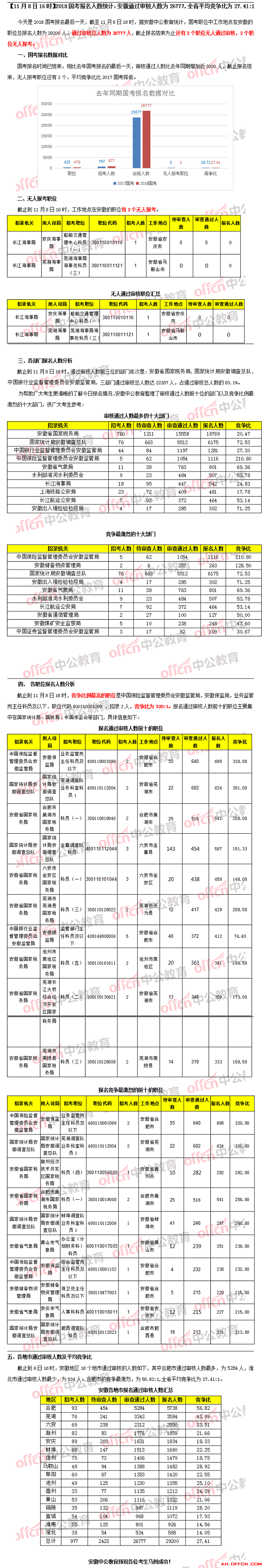 【11月8日16時】2018國考報(bào)名人數(shù)統(tǒng)計(jì):安徽通過審核人數(shù)為26777,全省平均競爭比為27.41:1