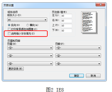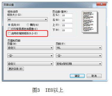 1、使用IE瀏覽器打印時,請首先進入瀏覽器菜單【文件】-【頁面設(shè)置】(圖1),將 “啟用縮小字體填充”(IE8,圖2)或“啟用收縮到紙張大小”(IE8以上,圖3)勾選項去掉后,點擊確定,然后再打印報名表或準(zhǔn)考證;
