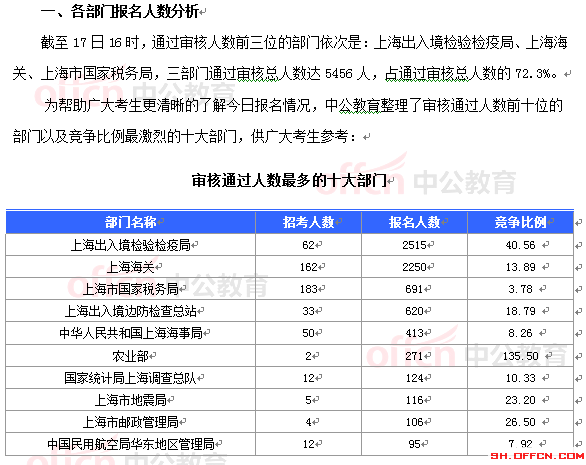 [17日16時(shí)]2015國(guó)考報(bào)名【上海】審核人數(shù)達(dá)7474人 最熱職位268:1