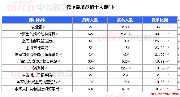 10月17日16時(shí),2015國(guó)家公務(wù)員考試報(bào)名進(jìn)入第3天。據(jù)中公網(wǎng)校統(tǒng)計(jì),國(guó)考職位中工作崗位在上海的職位通過(guò)審核的總?cè)藬?shù)為7474人,共有42個(gè)職位無(wú)人通過(guò)審核,平均競(jìng)爭(zhēng)比例為11.64:1。考生需注意這并不是最終的報(bào)名人數(shù),審核時(shí)間是截至2014年10月26日18:00。