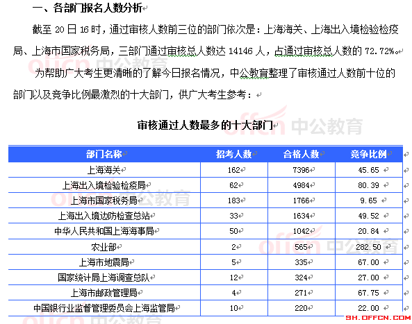 2015國考報名上海審核通過19453人 最熱職位558:1[截至20日16時]