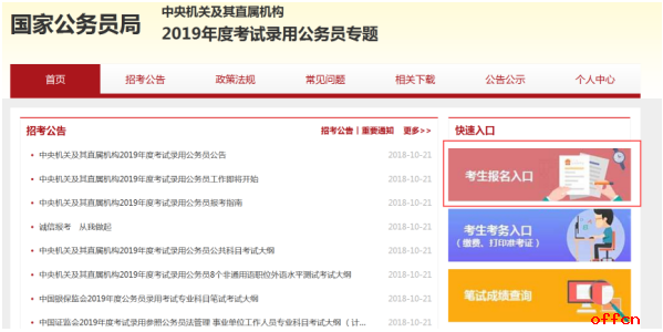 1.考生要認真對待報名注冊工作,一步一步走,不要心急,先進入國家公務員考試專題(http://bm.scs.gov.cn/pp/gkweb/core/web/ui/business/home/gkhome.html)點擊“考生報名入口”,如下圖。