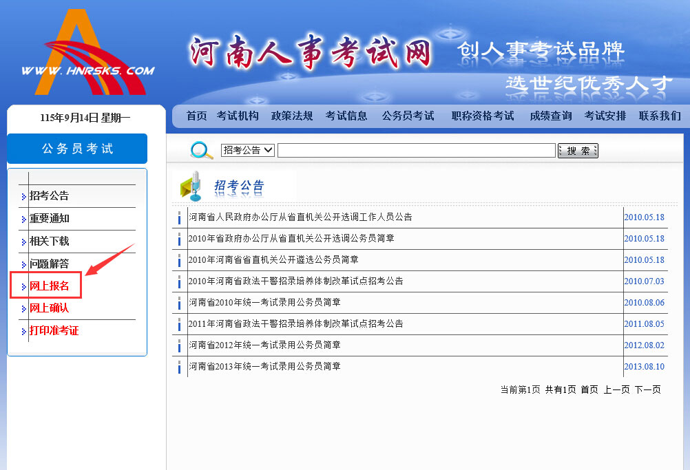 2015年河南公務(wù)員考試網(wǎng)上報名入口已經(jīng)開放,報名時間為9月14日8:00-18日18:00,希望大家不要錯過報名時間。中公教育河南中公網(wǎng)校小編特整理了今年河南公務(wù)員報名的流程,以供參考(以河南省直報名為例):