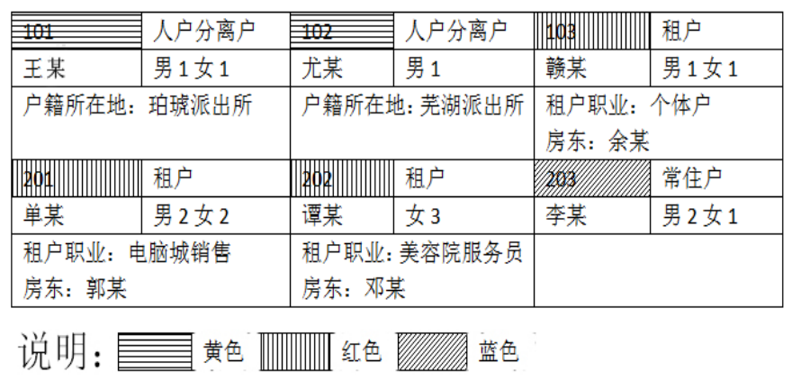 C.每戶標(biāo)注不同顏色表明對不同人口的管理有區(qū)別