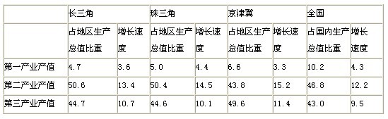 2010年三大經(jīng)濟(jì)圈產(chǎn)業(yè)結(jié)構(gòu)及增長(zhǎng)速度(%)