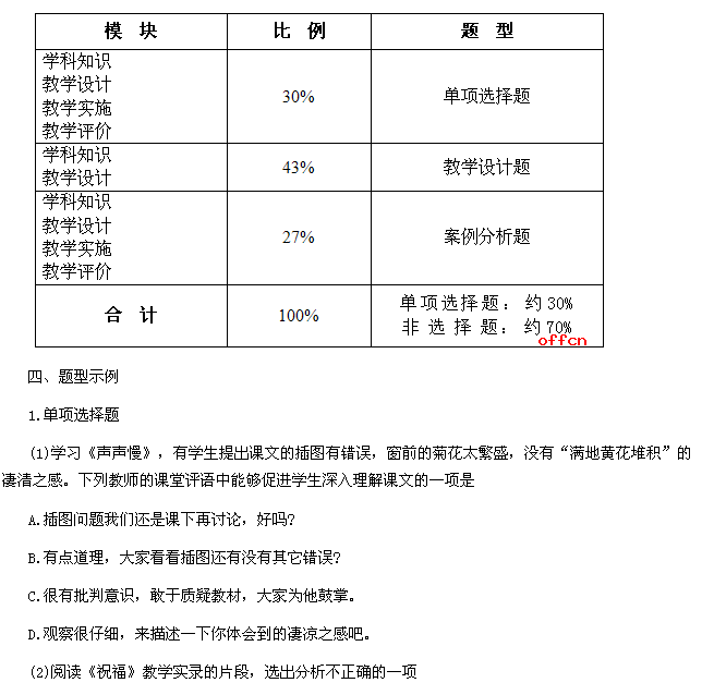 《語(yǔ)文學(xué)科知識(shí)與教學(xué)能力》(高級(jí)中學(xué))筆試大綱