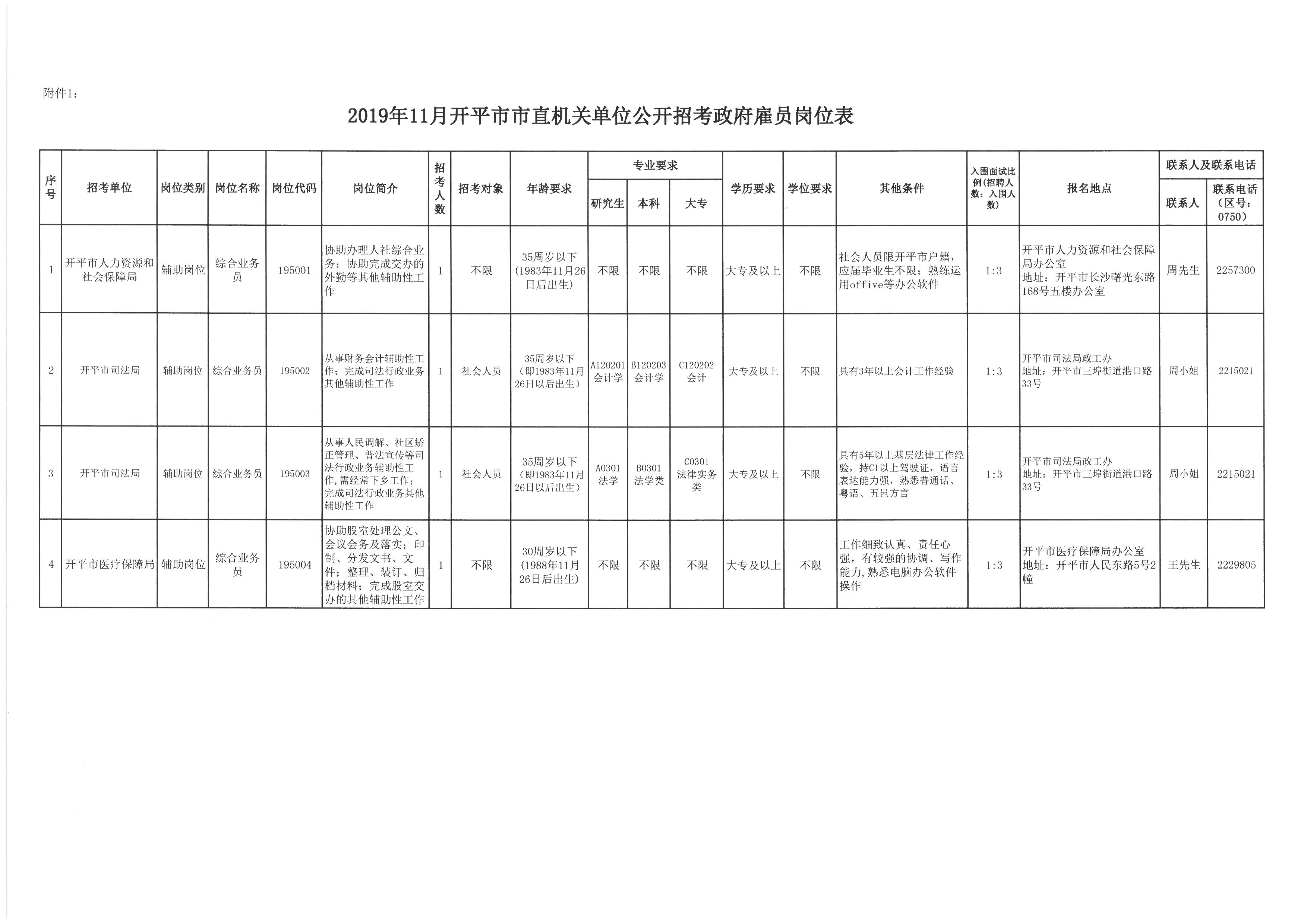 2019年十一月開平市市直機關(guān)單位公開招考政府雇員崗位表