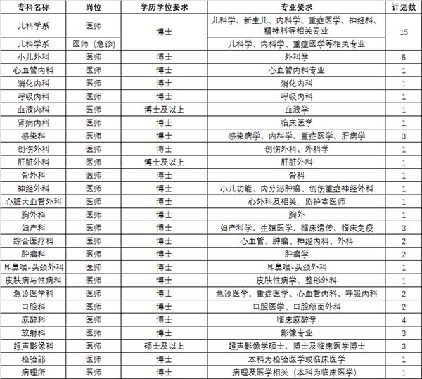 2、學歷要求:“雙”建設高校統(tǒng)招應屆碩士、博士,初始學歷要求一類院校全日制統(tǒng)招本科,且為臨床醫(yī)學相關專業(yè)。