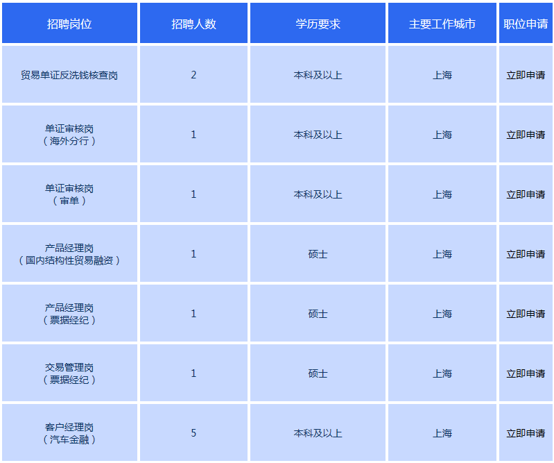 2020浦發(fā)銀行總行交易銀行部春季校園招聘公告(12人)