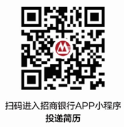 下載"招商銀行APP",打開左上角"掃一掃"功能,掃描下方二維碼,點擊"校園招聘",選擇北京分行發(fā)布的職位投遞簡歷。