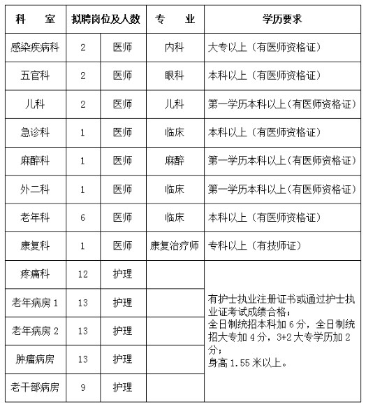根據(jù)醫(yī)院工作需要,上饒市廣豐區(qū)人民醫(yī)院2020年面向社會公開招聘聘用合同制專業(yè)技術(shù)人員(醫(yī)師16名,護(hù)理人員60名)?,F(xiàn)將有關(guān)事項(xiàng)公告如下: