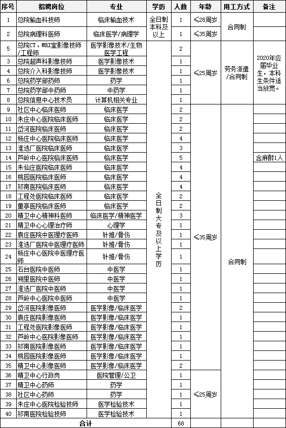 2020年淮北市礦工總醫(yī)院招聘68人公告