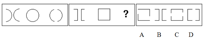 答案:D(因為只有D能使兩套圖形具有相似性,僅僅元素不同,一個是半圓,一個是半個正方形,但兩組圖形中元素的排列規(guī)律完全相同,故選D)